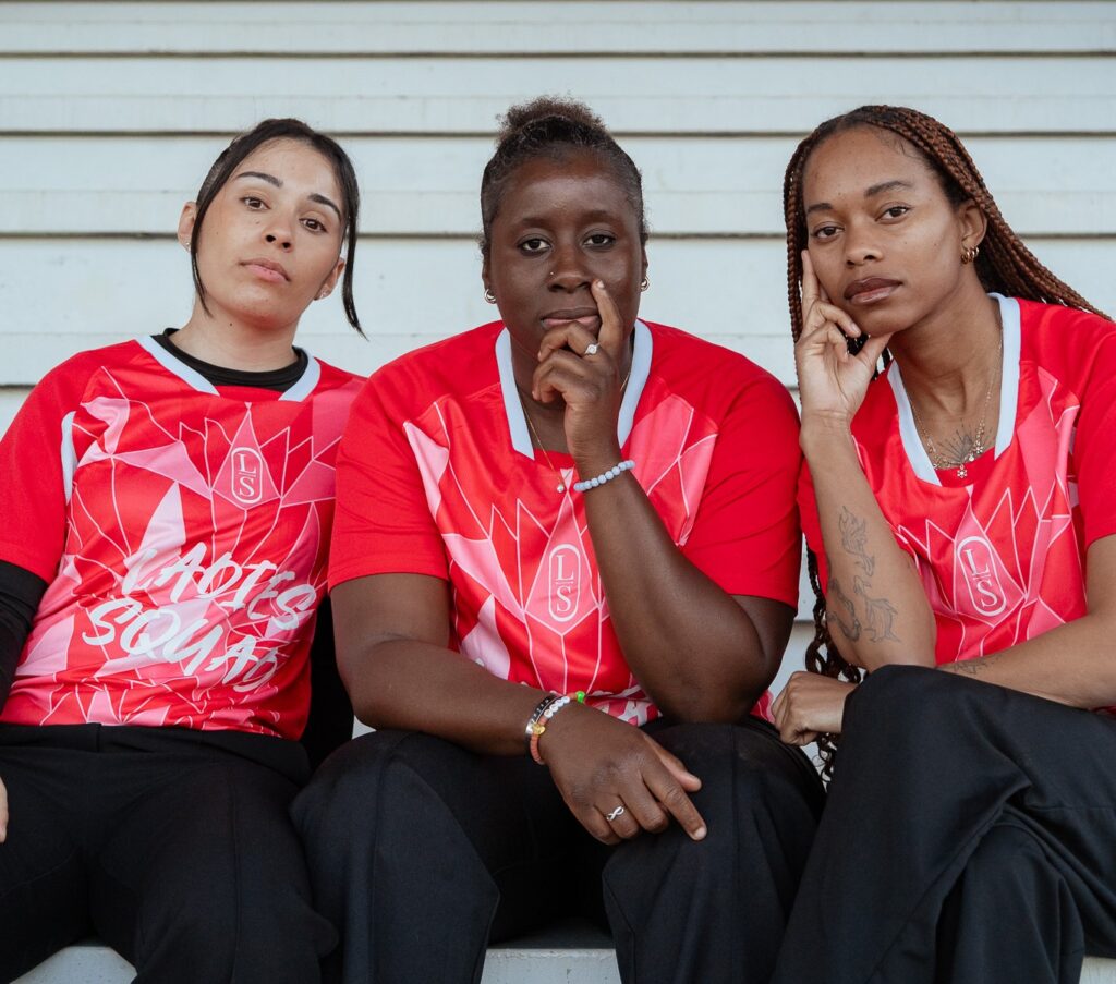 Sébé Coulibaly, directrice; Rafaela Lopes, responsable de communication; Myriam Zanoubi, Cheffe de projet, elles sont les fondatrices de l’association Ladies Squad, toutes les trois anciennes joueuses de football professionnelles.